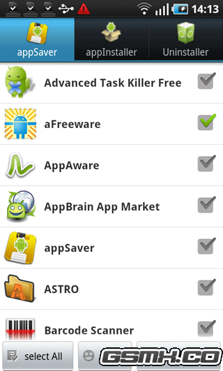 Z AppSaver mozesz łatwo zrobić backup zainstalowanych aplikacji na SD Card. Można również je instalować :) Rozmiar: 256KB Rozszerzenie: *.apk screeny: