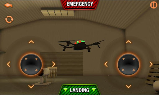 Poziom magazynu. Fly przez tunele i spróbuj wylądować na paletach.