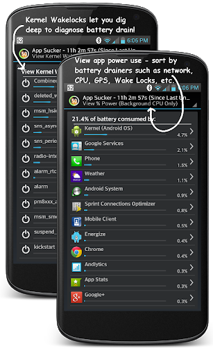 • Hunt down those battery draining Apps with the App Sucker