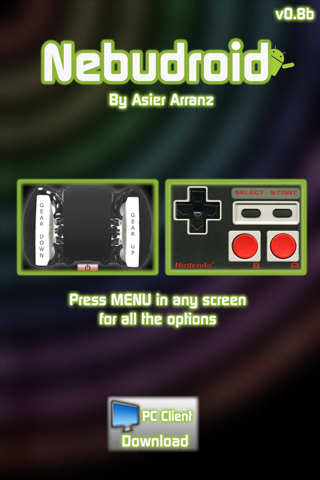 Nebudroid opis Nebudroid jest to aplikacja, która zamienia nasz smartfon w kierownicę bądź kontroler NES. Umożliwia granie w większość gier. Posiada analogowy tryb do grania w Live For Speed opis Rozmiar: 7,46MB Rozszerzenie: rar Rozdzielczość: multi Dodatkowe info: W paczce plik apk do instalacji na telefonie i exe do instalacji na komputerze. screeny Film przedstawiający działanie aplikacji w grze Need For Speed: Underground 2 download http://www.mediafire.com/?yoys32vbdfakfon