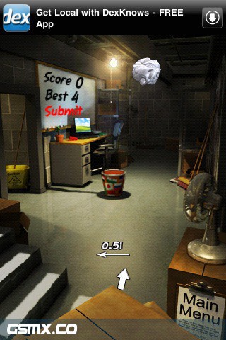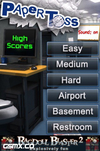 Recenzja gry Paper Toss dla iPhone 2G/3G/3G S/telefonów opartych na systemie Android na przykładzie iPhone.