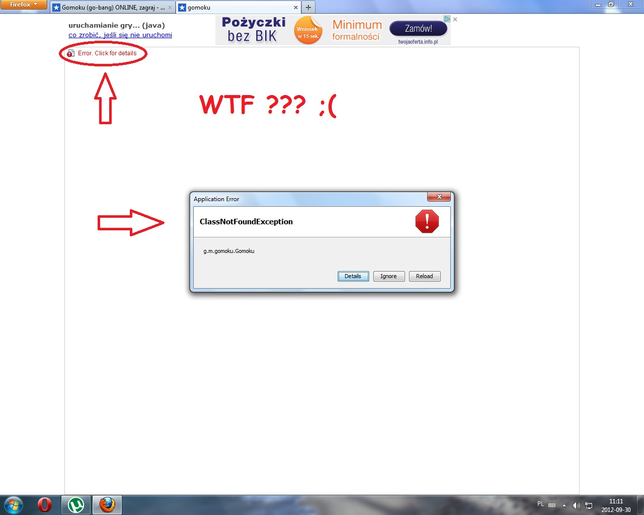 Siemka mam dość nie typowy problem z graniem na serwisie Kurnik.pl Po zalogowaniu i wybraniu gry wyświetla się taki o to błąd : Czy ktoś wie co z tym zrobić ????