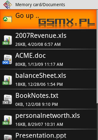 * Open .doc and .xls files from memory card or from Gmail attachments